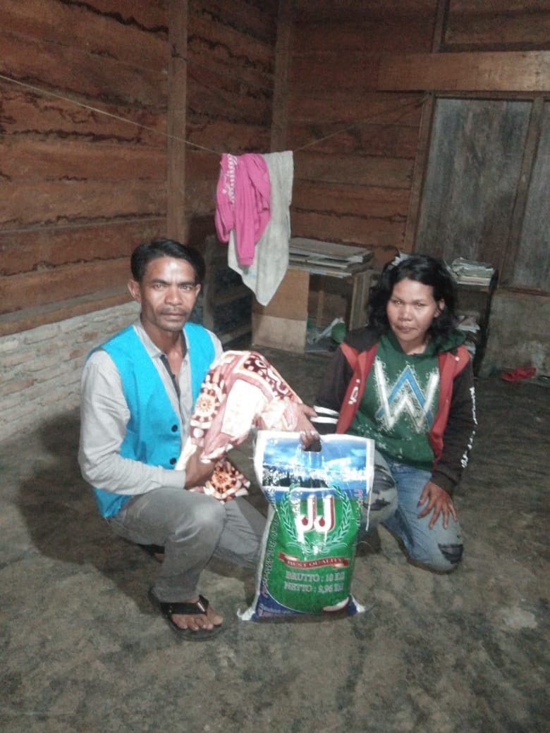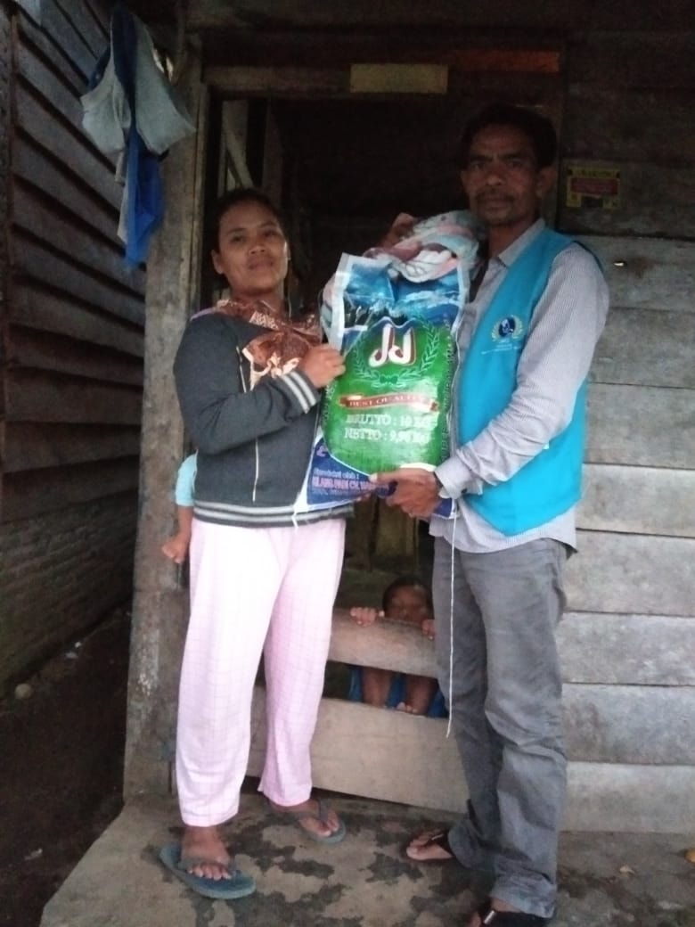 Dan telah diserahkan bantuan 38 bungkus beras 10 kg kepada masyarakat.