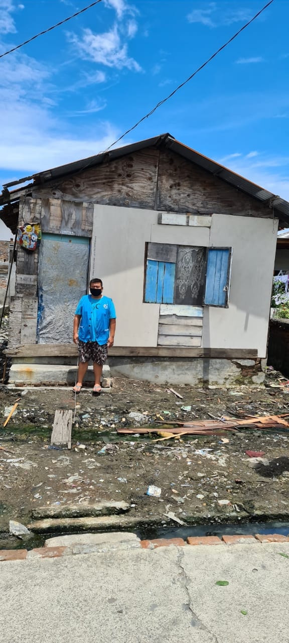Telah disurvey Ibu Siti umur 67 tahun, tinggal sendirian di belawan dalam keadaan rumah yang tidak layak.. Rumah ibu ini selalu bocor dan kebanjiran saat hujan.