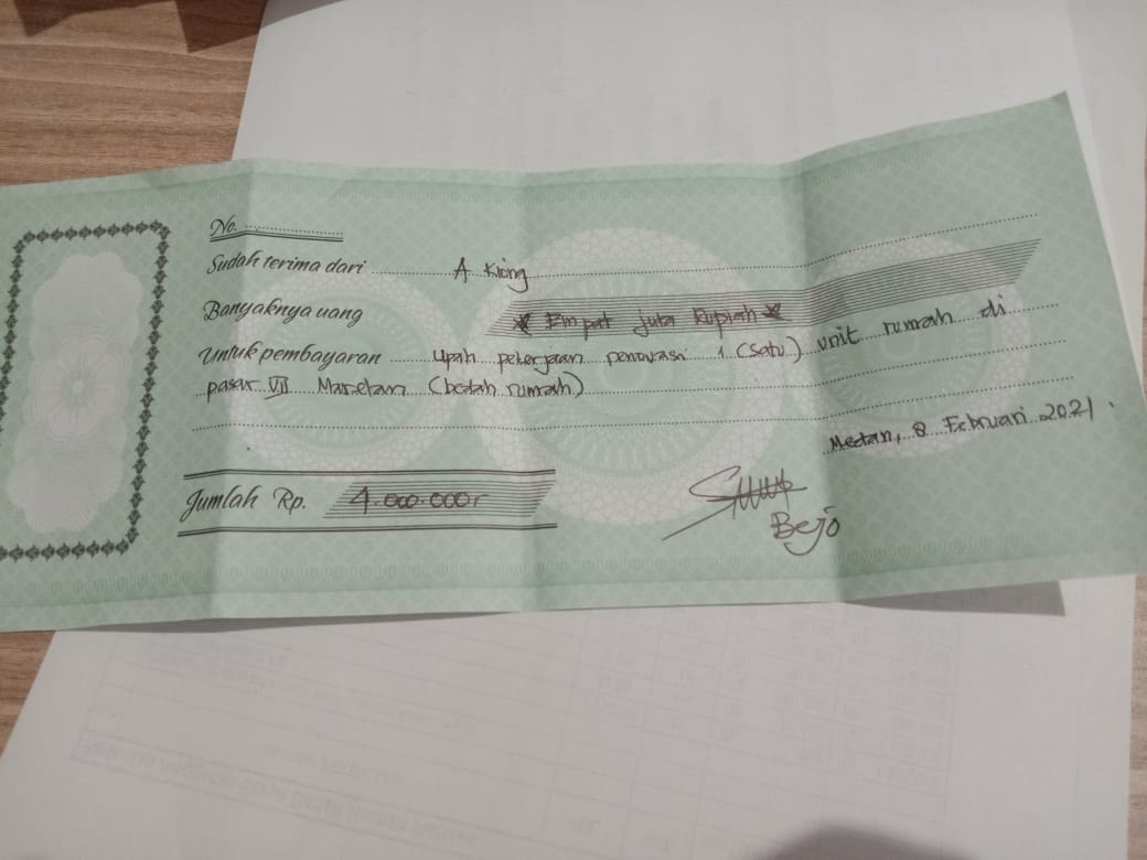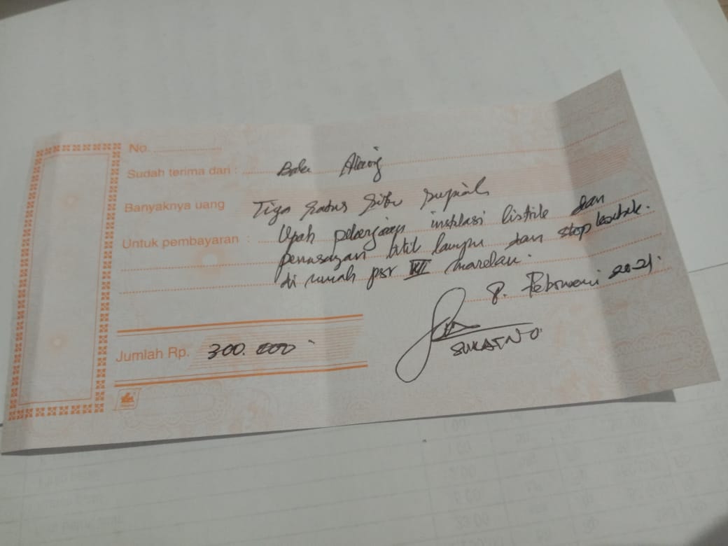 Bukti pengeluaran biaya berupa bon bisa di lihat di foto bawah ini.