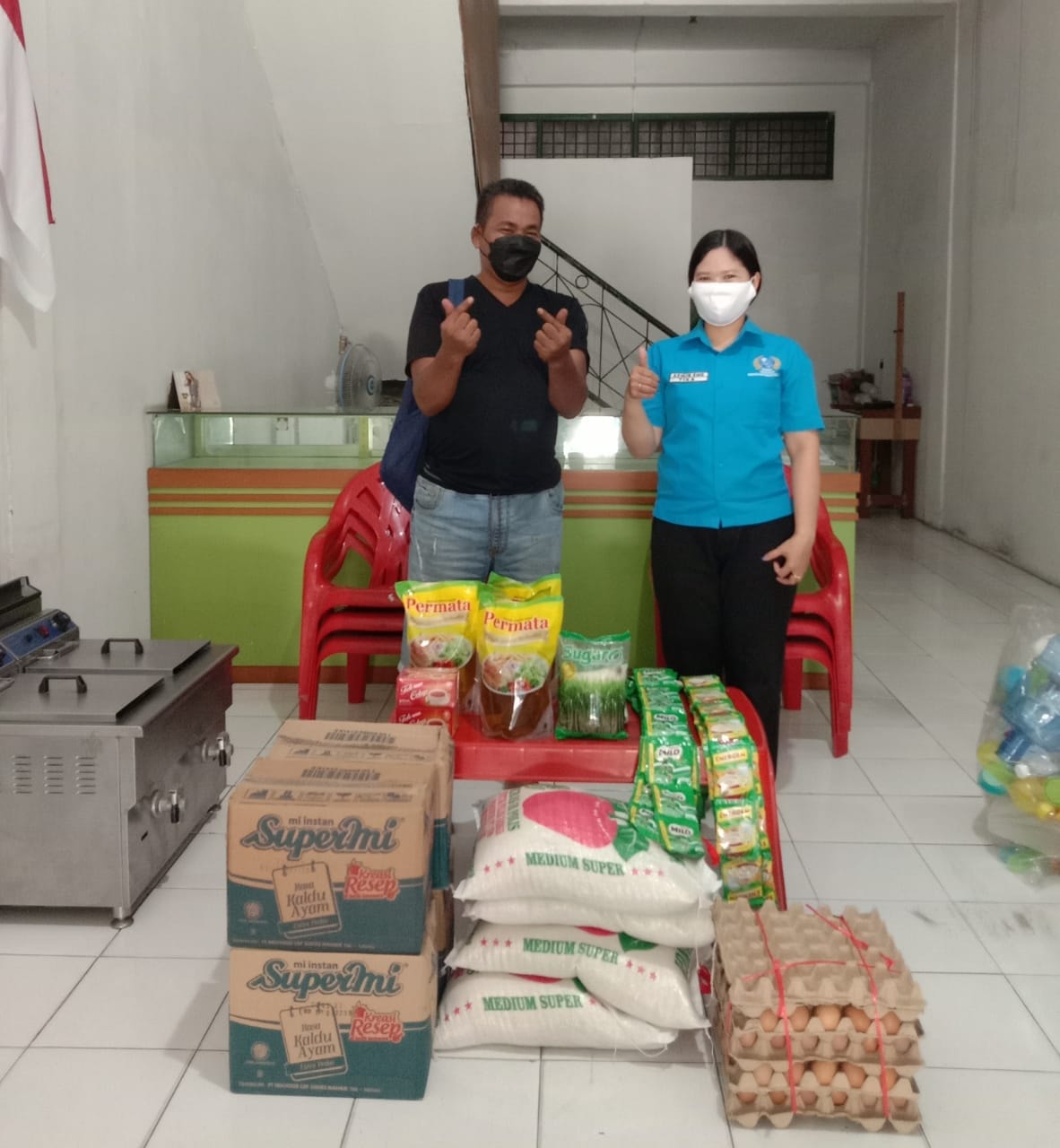 MENYERAHKAN 8 PAKET SEMBAKO SUMBANGAN DARI IBU LIN CHU