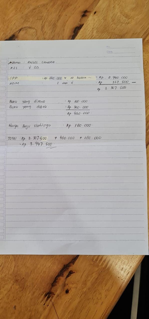 1. Uang sekolah 12 x Rp. 245.000 = Rp. 2.940.000