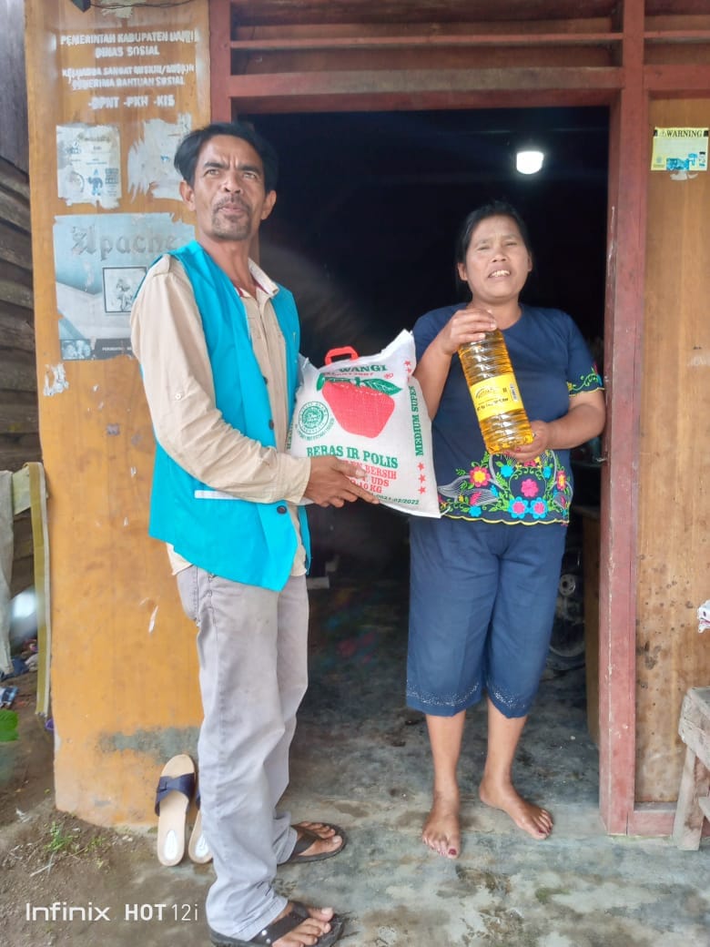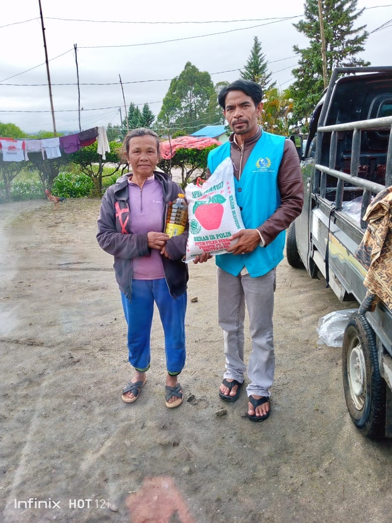 Telah dibagikan beras 10 kg 50 goni dan minyak goreng 2L 50 botol kepada saudara kita yang membutuhkan.