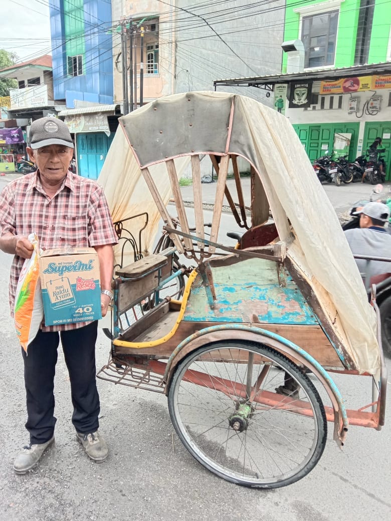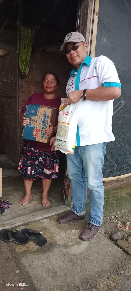 Telah dibagikan beras 5 kg 50 goni dari 100 goni dan Supermie 50 kotak dari 100 kotak kepada saudara kita yang membutuhkan.