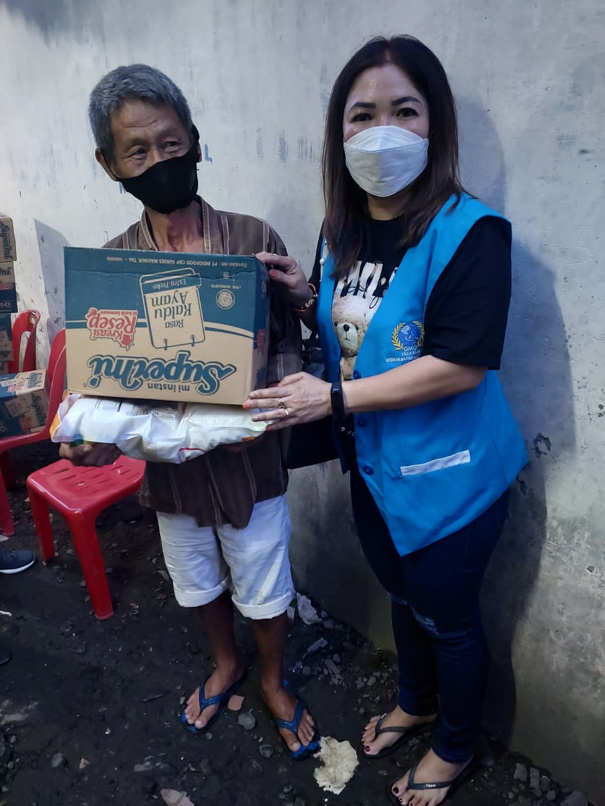 Sumbangan beras 5 kg 100 goni dan Supermie 100 kotak sumbangan dari bapak Suanto Halim