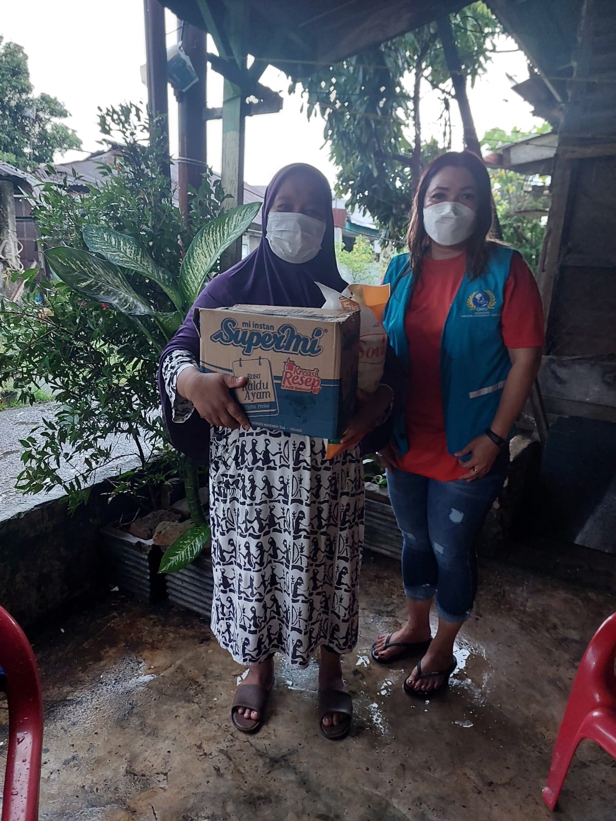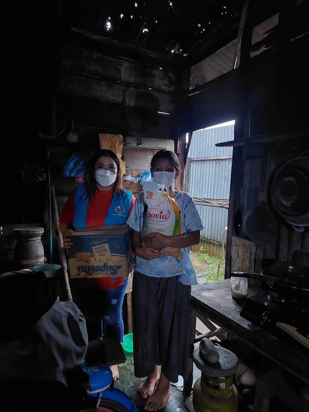 Telah dibagikan beras 5 kg 50 goni dari 100 goni dan Supermie 50 kotak dari 100 kotak kepada saudara kita yang membutuhkan.