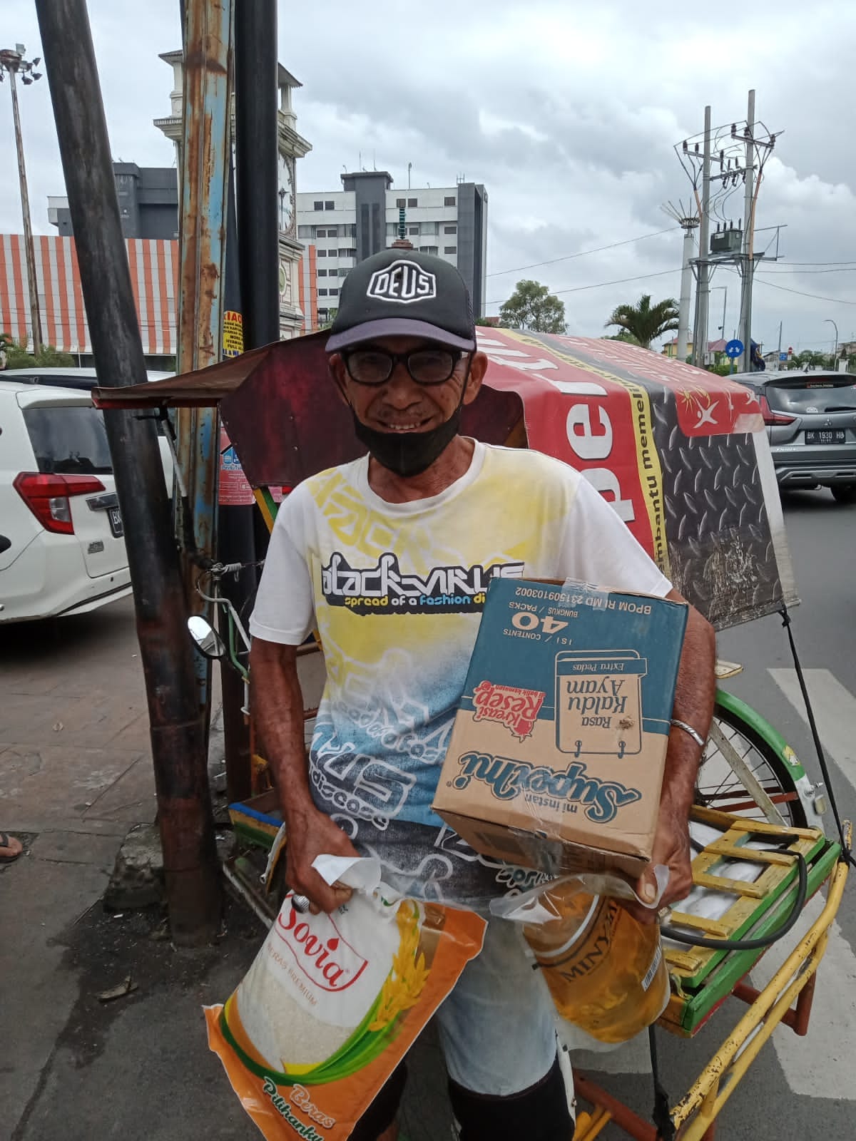 Sumbangan beras 5 kg 50 goni dan Supermie 50 kotak sumbangan dari bapak SUANTO HALIM.