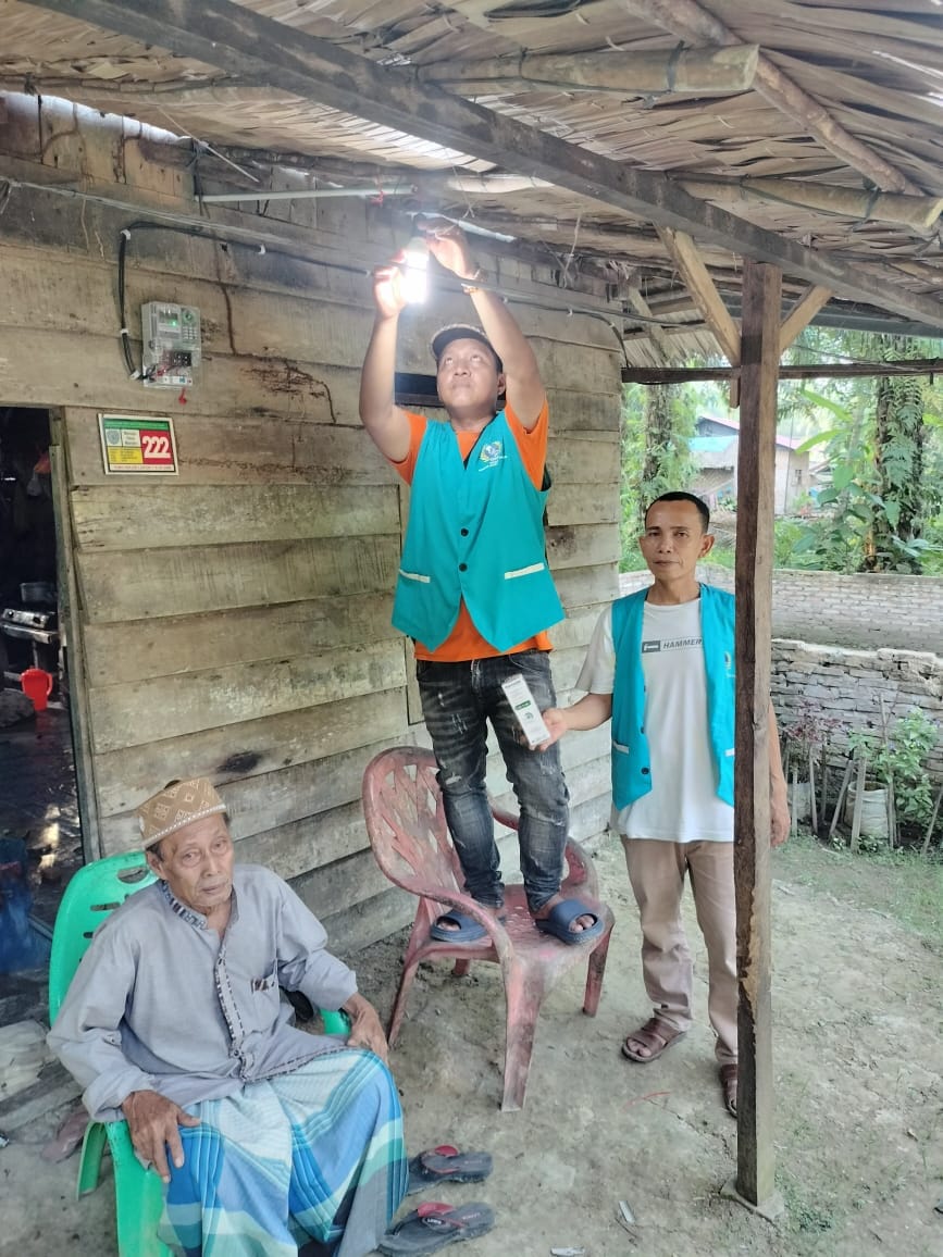 Telah di berikan bantuan pemasangan listrik PLN kepada bapak Karnel umur 78 tahun yang selama ini tinggal dirumah tanpa listrik dan lampu karena tidak ada biaya untuk memasang listrik.