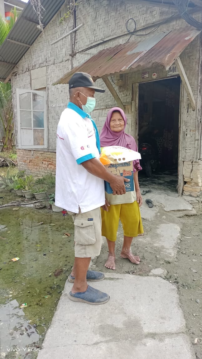 Telah dibagikan beras 5 kg 50 goni dari 100 goni dan Supermie 50 kotak dari 100 kotak kepada saudara kita yang membutuhkan.