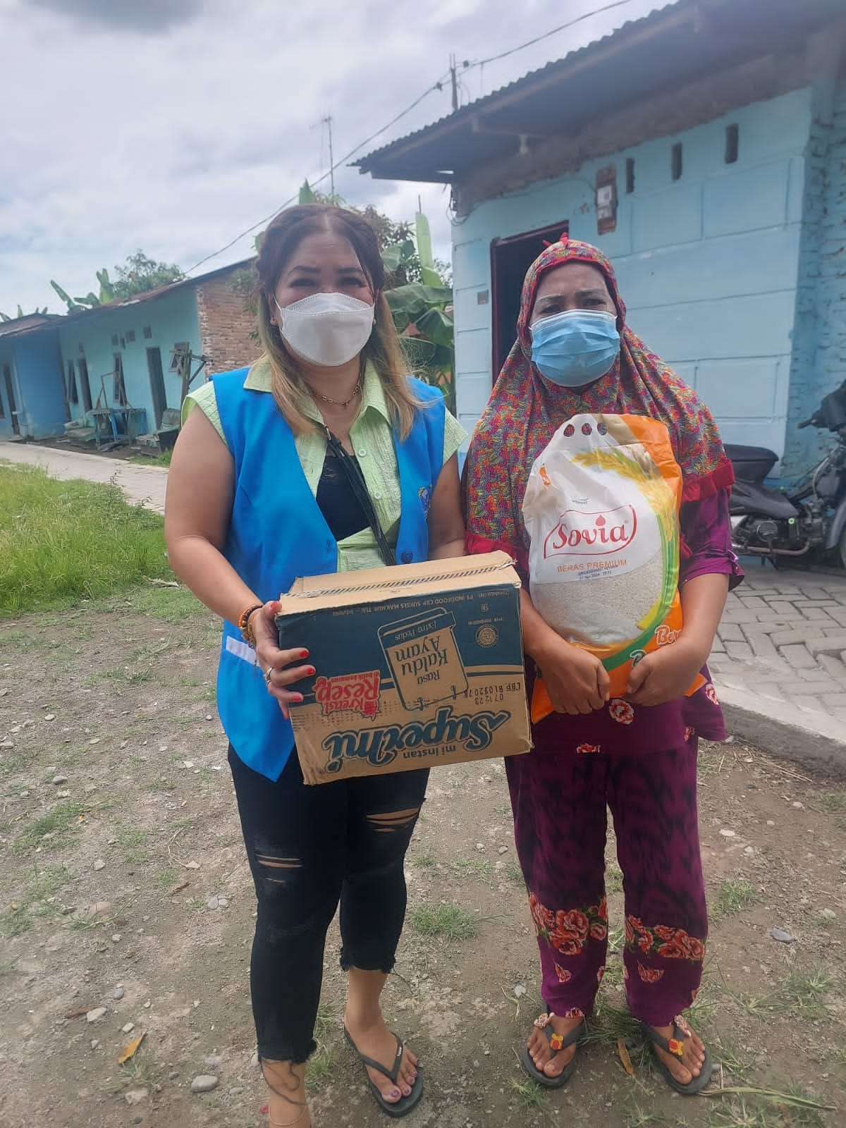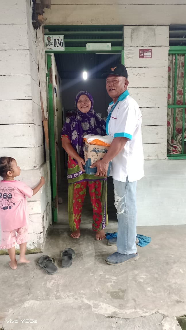 Telah dibagikan beras 5 kg 50 goni dari 100 goni dan Supermie 50 kotak dari 100 kotak kepada saudara kita yang membutuhkan.