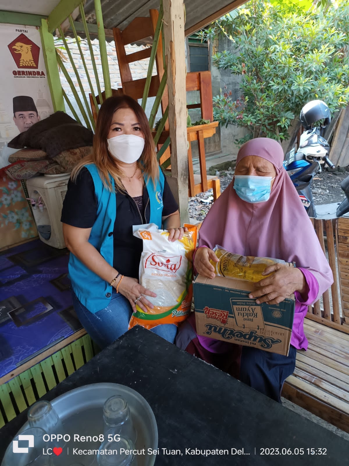 Sumbangan beras 5 kg 100 goni dan Supermie 100 kotak dari