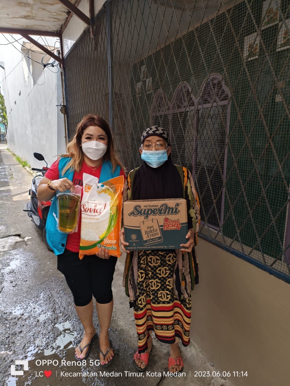 Sumbangan beras 5 kg 100 goni dan Supermie 100 kotak dari