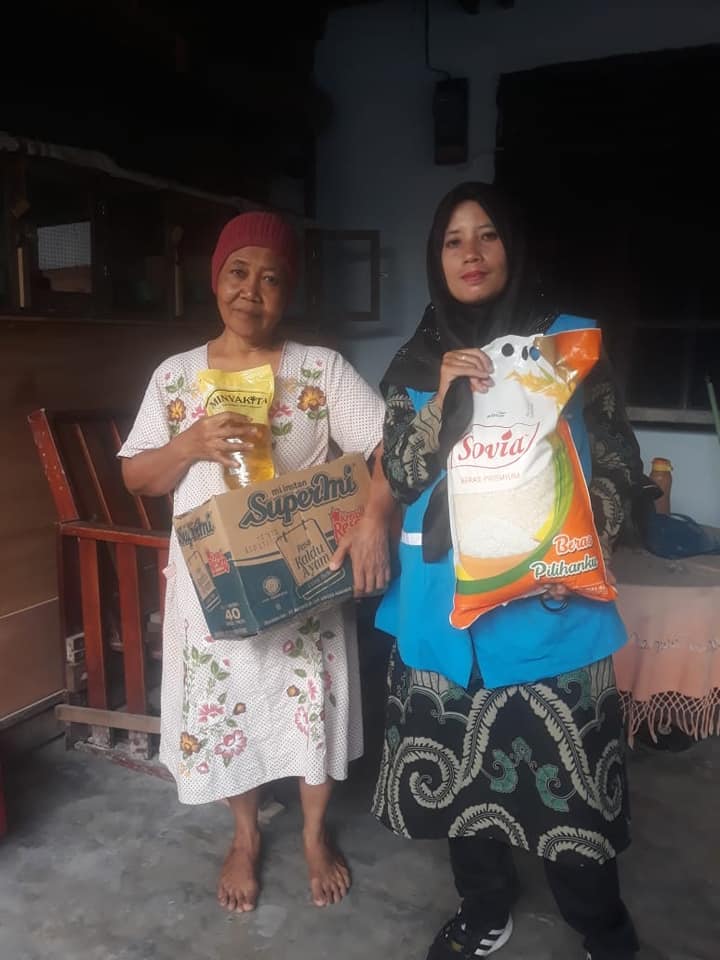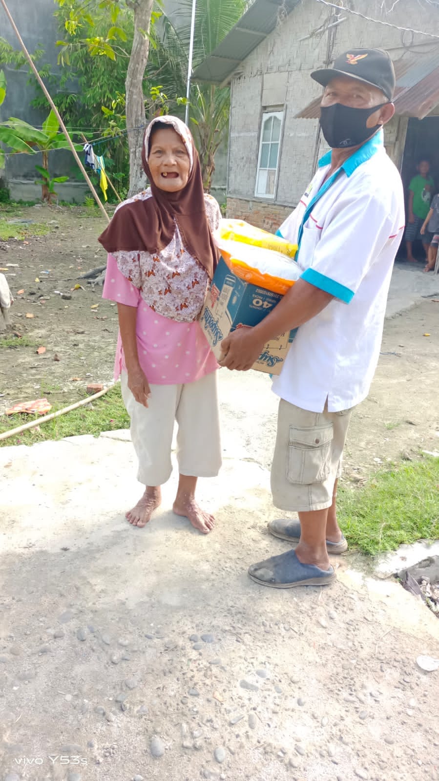 Telah dibagikan beras 5 kg 50 goni dari 100 goni dan Supermie 50 kotak dari 100 kotak dan minyak goreng 1L 50 bungkus kepada saudara kita yang membutuhkan.