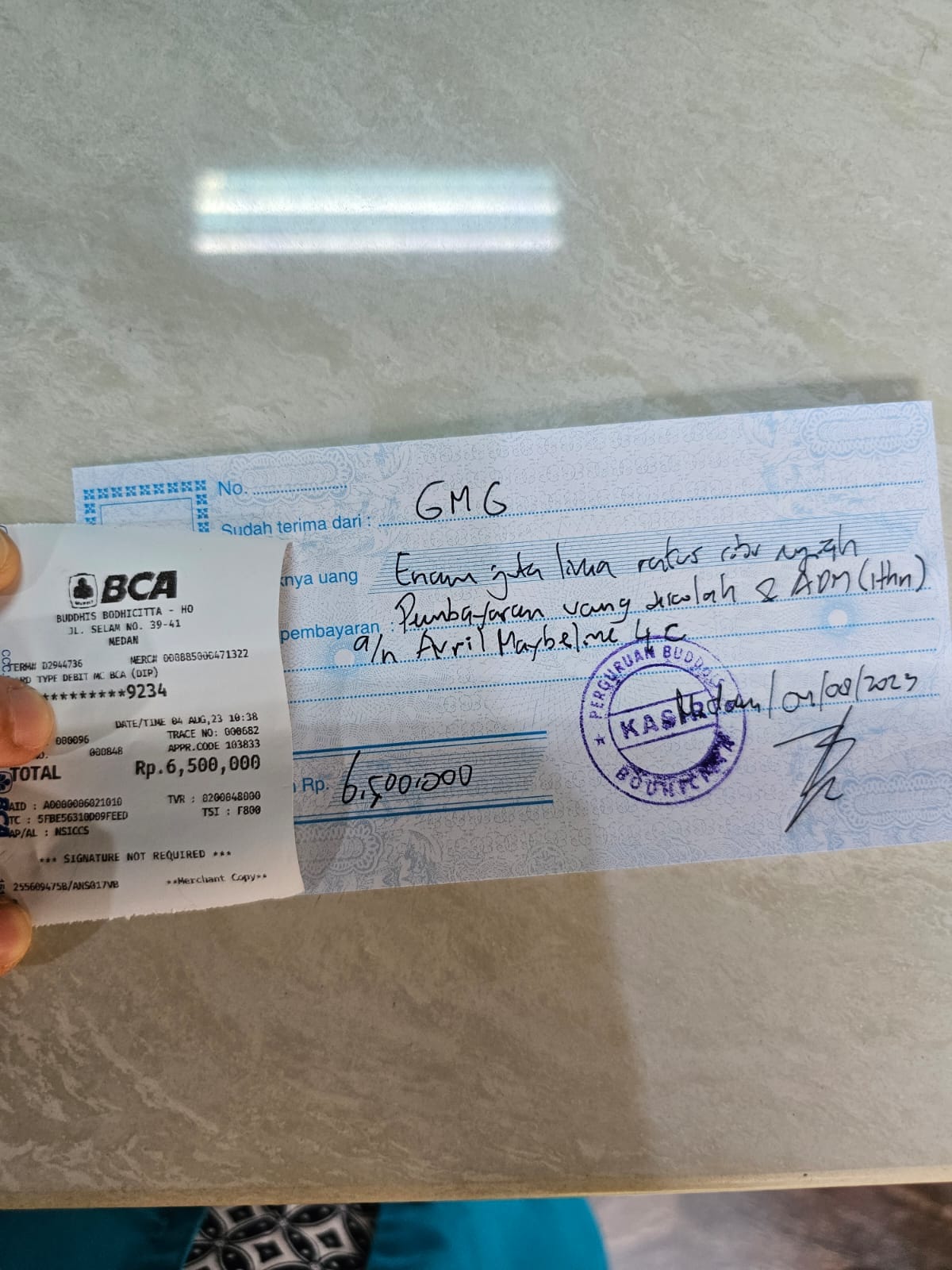 Pembayaran Spp dan admin Avril Maybeline selama satu tahun