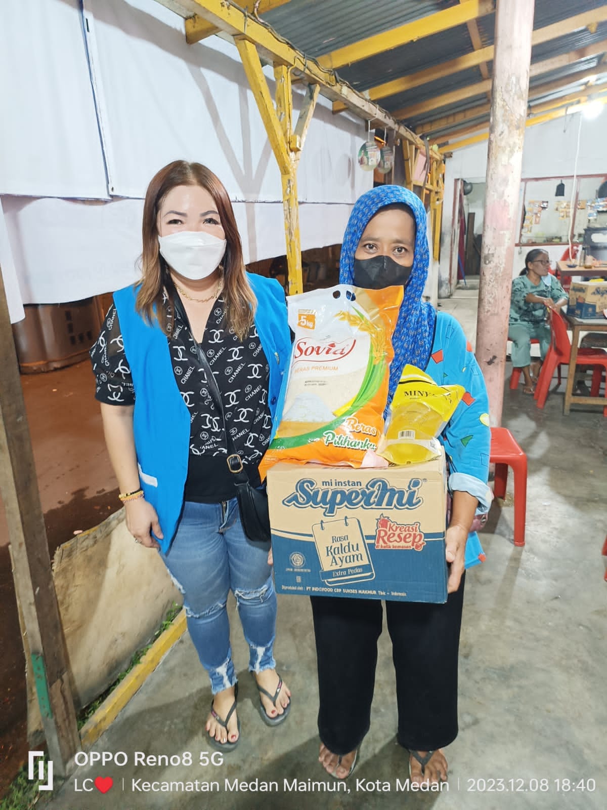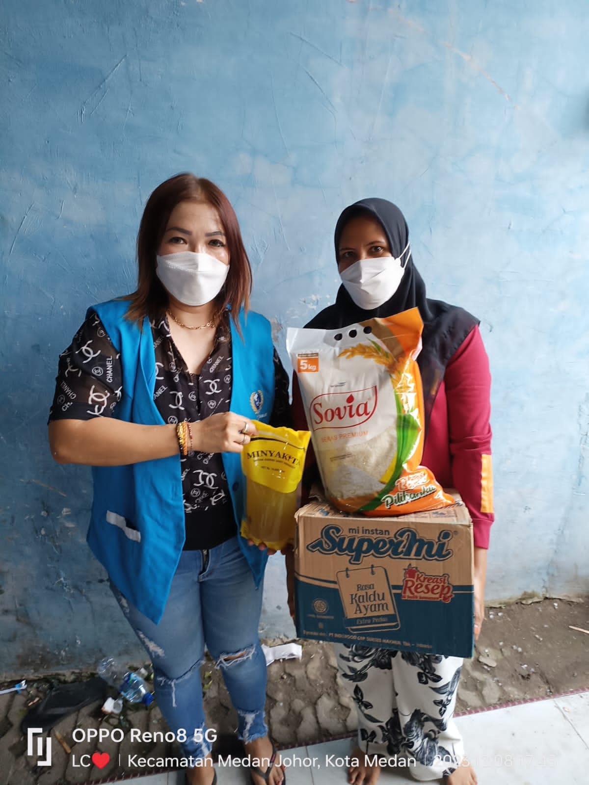 Telah dibagikan beras 5 kg 40 goni dan Supermie 40 kotak dan minyak goreng 1L 40 bungkus kepada saudara kita yang membutuhkan.