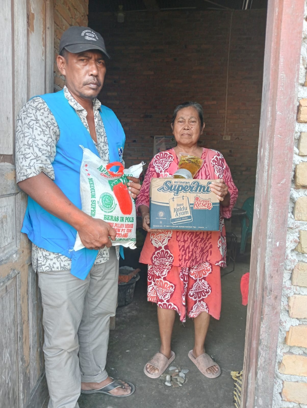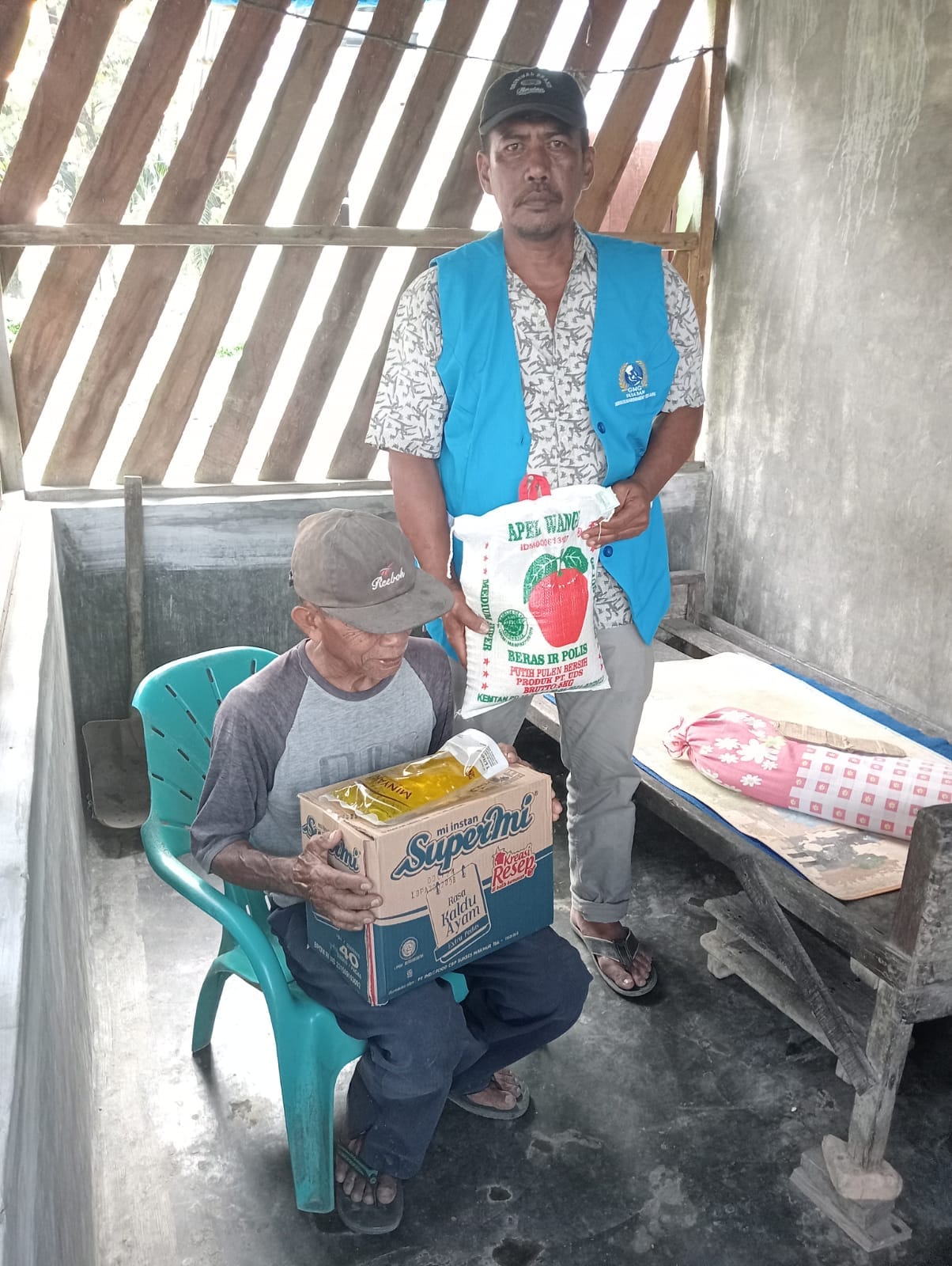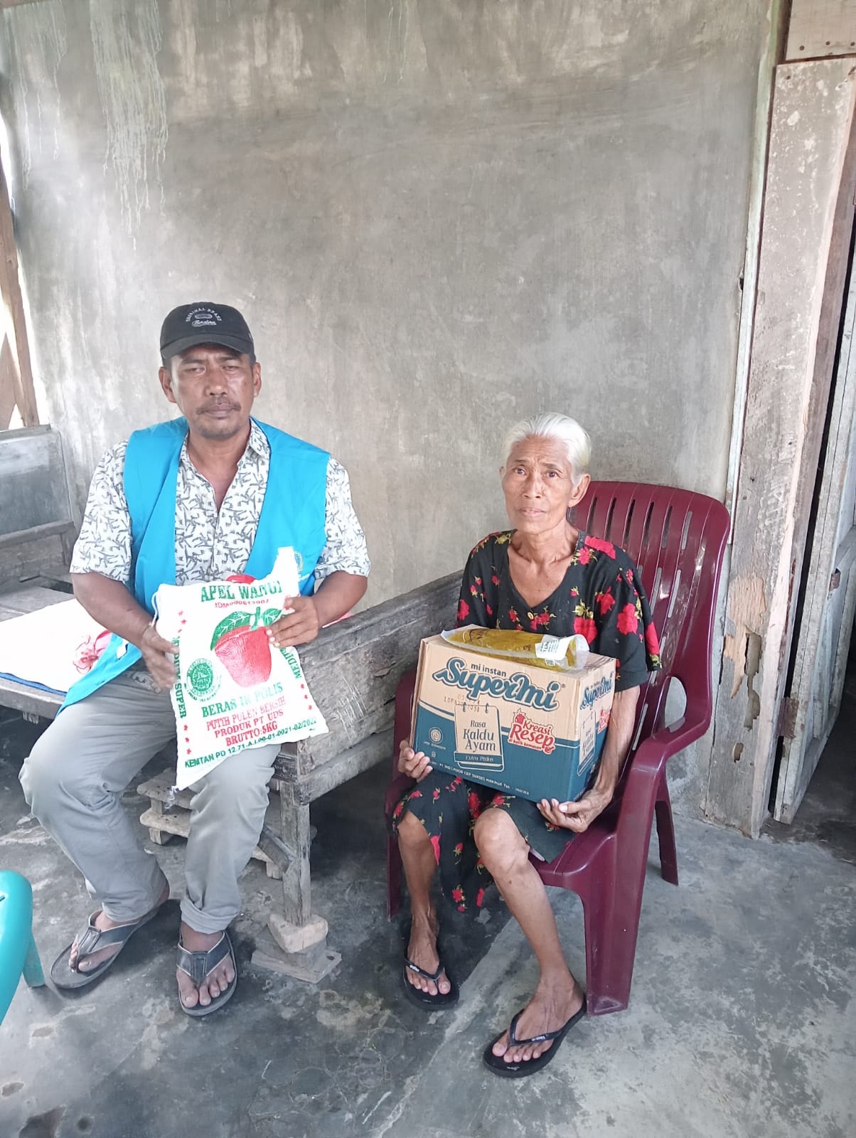 Telah dibagikan beras 5 kg 52 goni dari 105 goni dan supermie 52 kotak dari 105 kotak dan minyak goreng 1L 52 bungkus dari 105 kepada saudara kita yang membutuhkan.