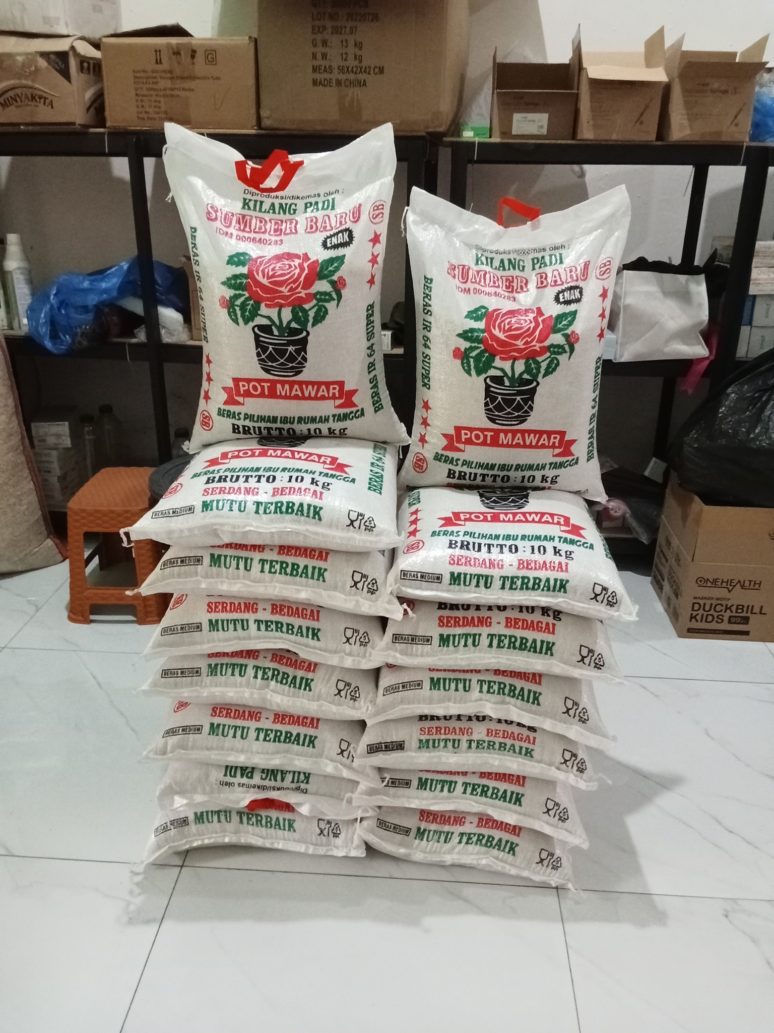 BAGI BERAS 10 KG 15 GONI DAN MINYAK GORENG 1L 15 BUNGKUS
