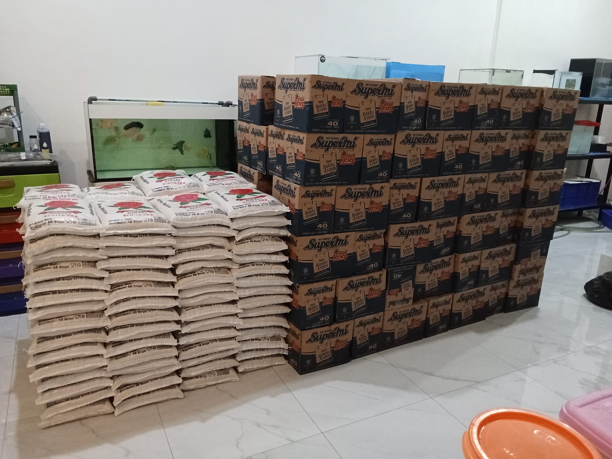 TERIMA BERAS 5KG 120 GONI DAN SUPERMIE 120 KOTAK