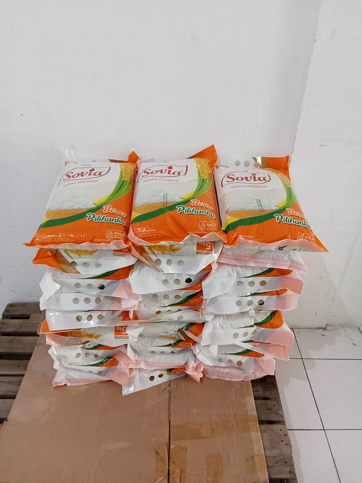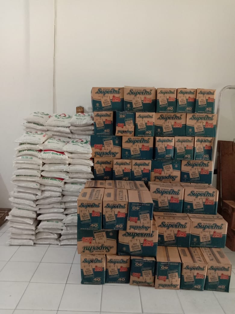BAGI BERAS 5 KG 30 GONI DAN SUPERMI 30 KOTAK DAN MINYAK GORENG 1L 30 BUNGKUS