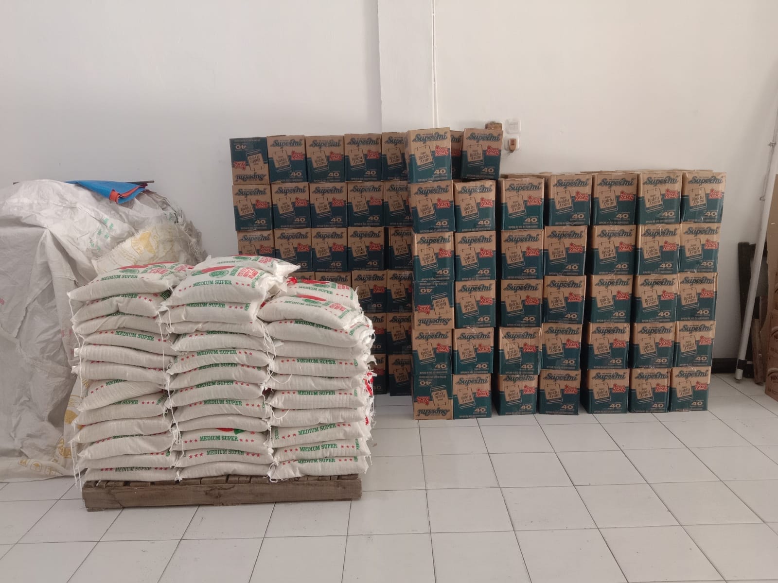 BAGI BERAS 5 KG 52 GONI DARI 103 GONI DAN SUPERMIE 52 KOTAK DARI 103 KOTAK DAN MINYAK GORENG 1L 52 BUNGKUS DARI 103 BUNGKUS