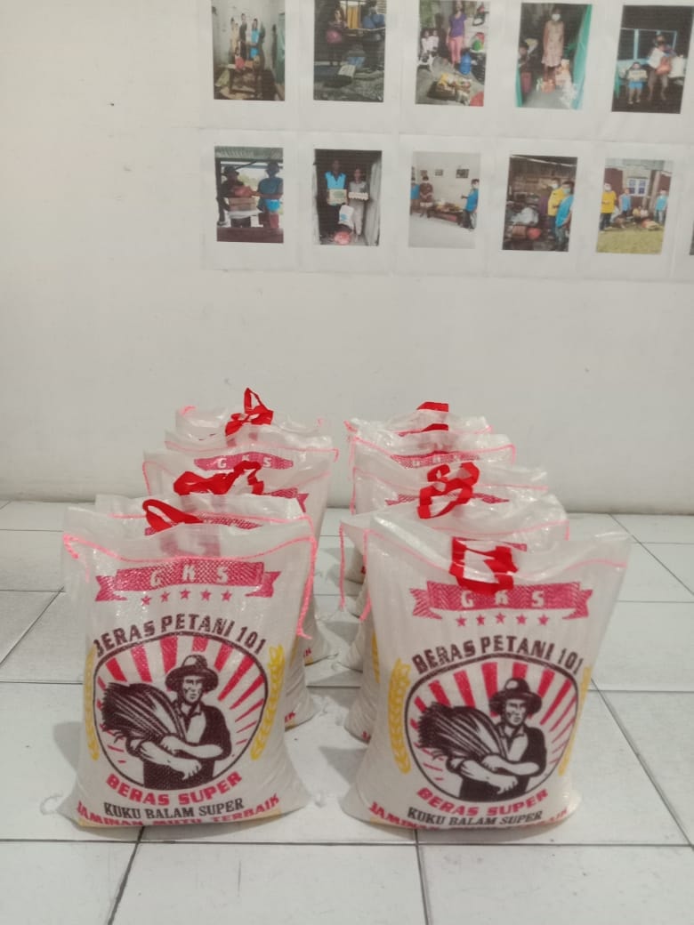 PEMBAGIAN BERAS 10 KG 20 GONI SUMBANGAN DARI BAPAK FERNANDO SUTANTO