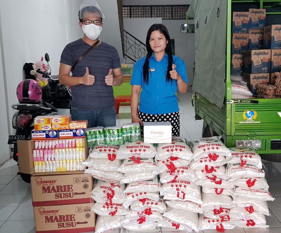 MENERIMA SUMBANGAN SEMBAKO DARI BAPAK RICKY HASLIM DAN KELUARGA DAN BAPAK HARTO GUNAWAN DI ANTAR KE KANTOR YAYASAN GMG